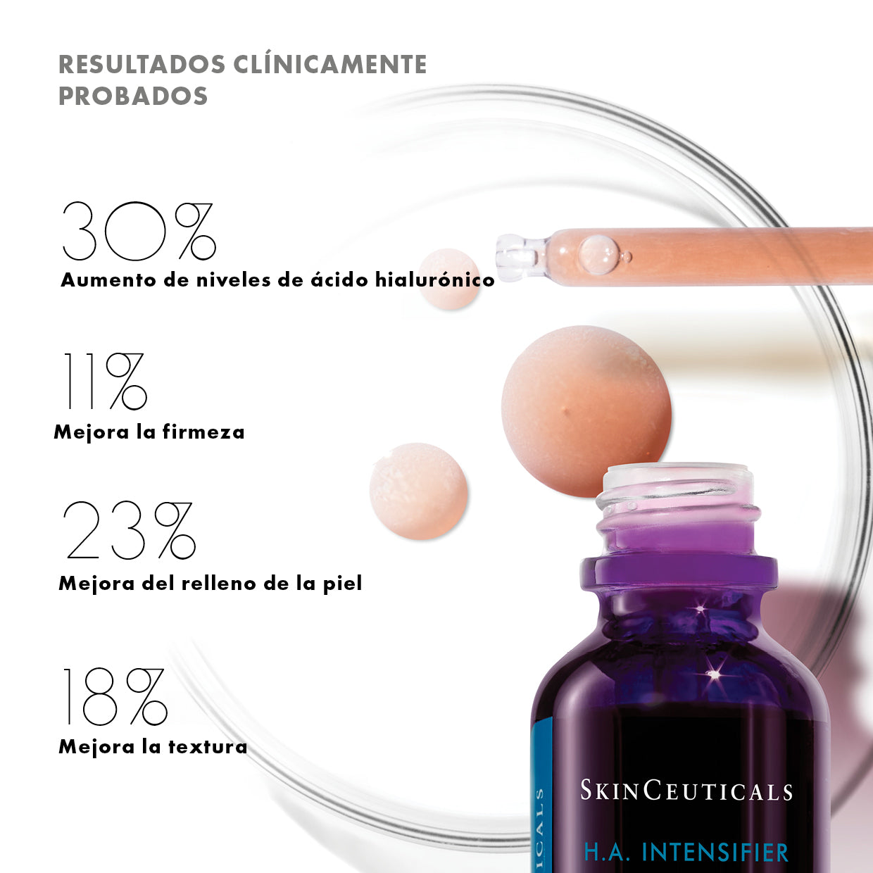 HA Intensifier, es un sérum corrector con múltiples beneficios y eficacia probado, que aumenta los niveles de ácido hialurónico de la piel.