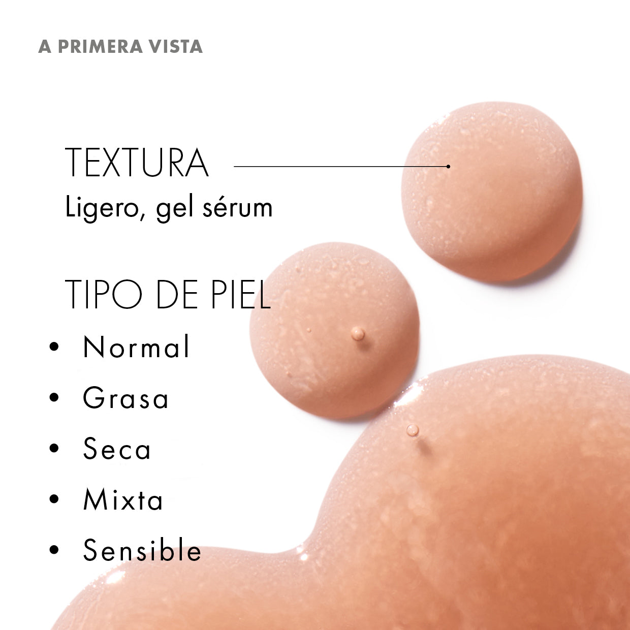 - La textura exclusiva en gel de este sérum crea un acabado suave en la piel.